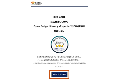 「オープンバッジサービス仮登録のお知らせ」という件名のメールが届きます。